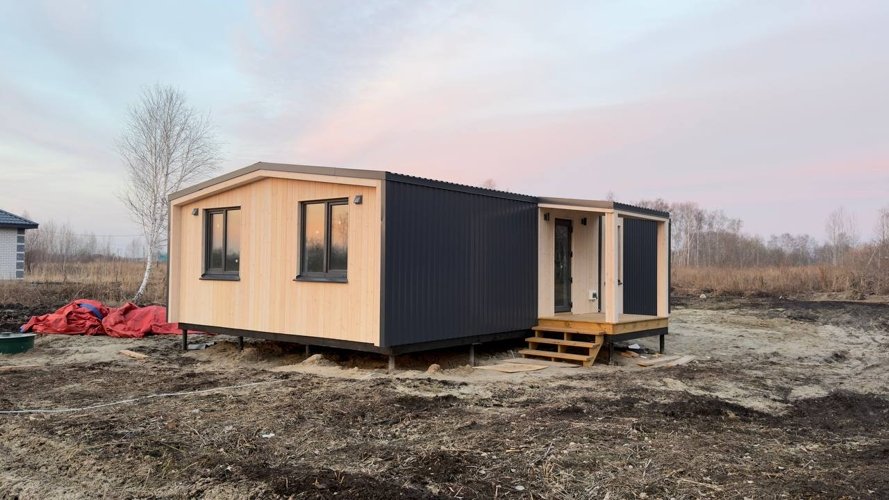 Это отделка внешних стен натуральным деревом, который предварительно обработан лаком.