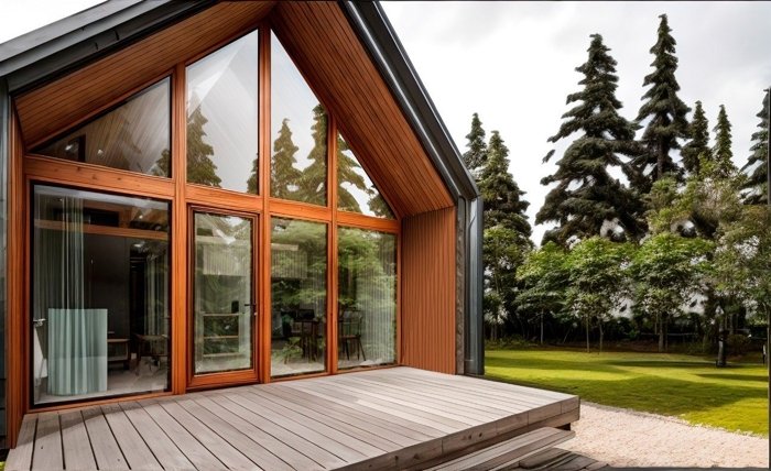 Не используются металлические профили для фасадов, только натуральное дерево. Это даёт возможность с комфортом проводить время в доме и на террасе.