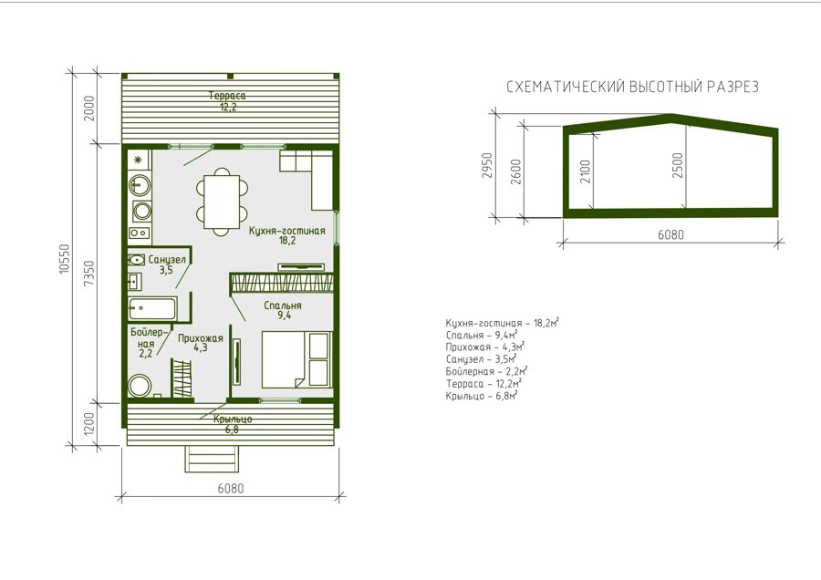 57 м2, каркасный дом, 1 спальня