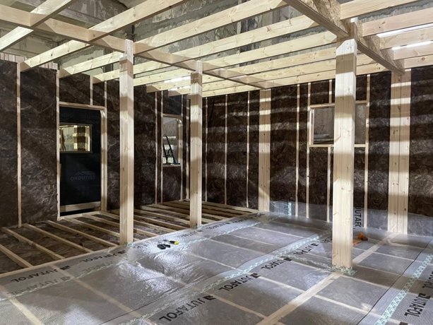 Основу каркасного дома составляют сухие строганные доски, из которых изготавливаются стойки, косые и поперечные элементы стен. Обязательно проходит термическую обработку, благодаря которой из древесины удаляется лишняя влага.