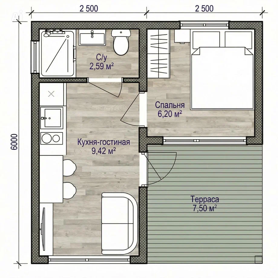 Площадь от 26 м2